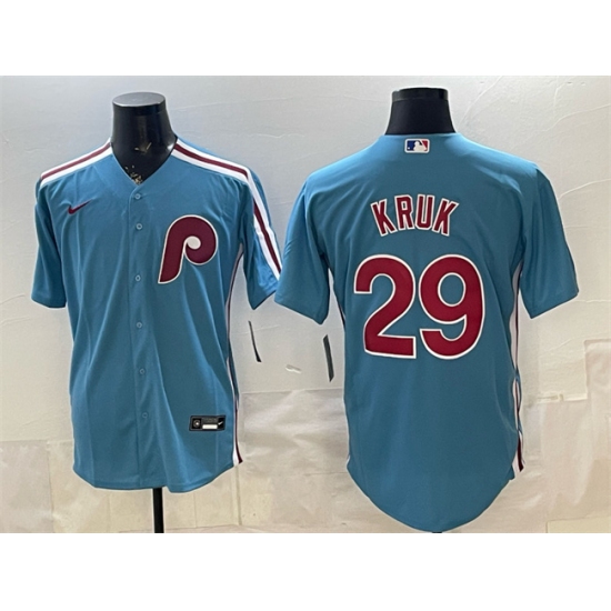 >Men's Philadelphia Phillies #29 John Kruk Blue Cool Base Stitched Jersey