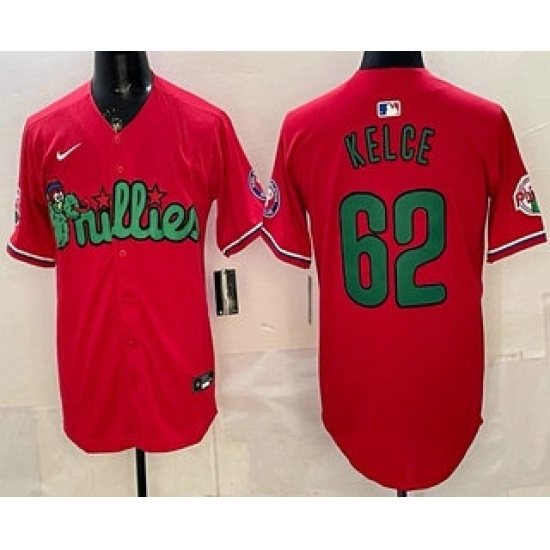Men's Philadelphia Phillies #62 Jason Kelce Red Limited Stitched Jersey