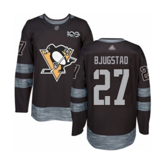 Men's Pittsburgh Penguins #27 Nick Bjugstad Authentic Black 1917-2017 100th Anniversary Hockey Jersey