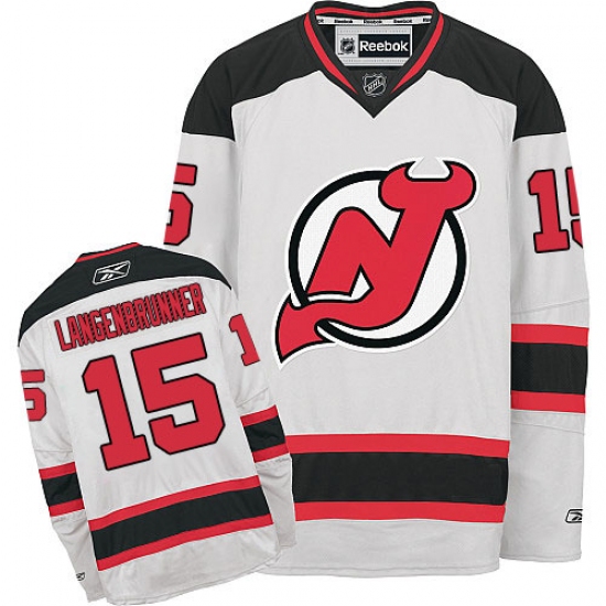 Men's Reebok New Jersey Devils #15 Jamie Langenbrunner Authentic White Away NHL Jersey