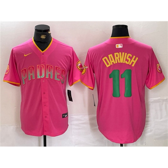 Men's San Diego Padres #11 Yu Darvish Pink Player Number Fashion Baseball Jersey
