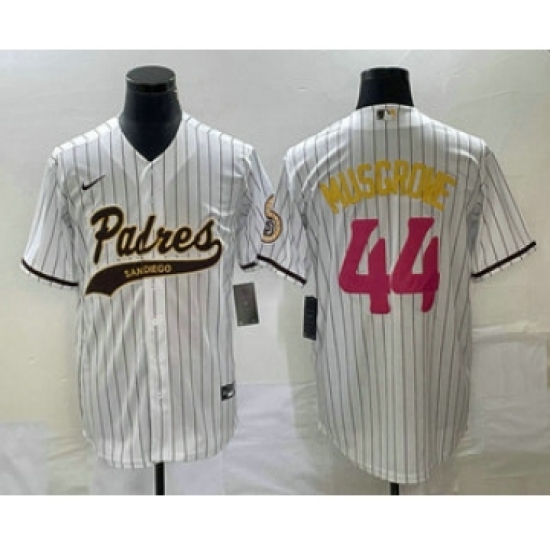 Men's San Diego Padres #44 Joe Musgrove White Pinstripe 2023 City Connect Cool Base Stitched Jersey 1