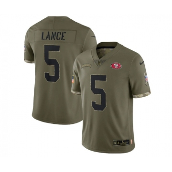 >Men's San Francisco 49ers #5 Trey Lance 2022 Olive Salute To Service Limited Stitched Jersey