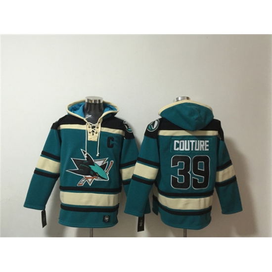 >Men's San Jose Sharks #39 Logan Couture Teal Lace-Up Pullover Hoodie