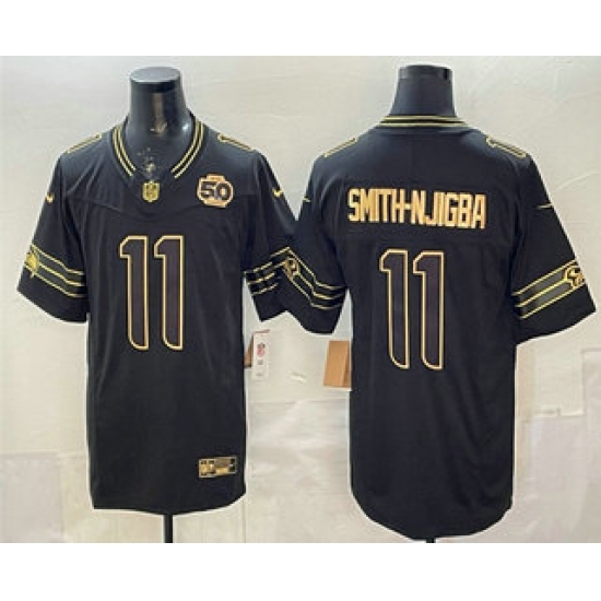 >Men's Seattle Seahawks #11 Jaxon Smith-Njigba Black Gold 2025 FUSE 50th Season Limited Stitched Jersey