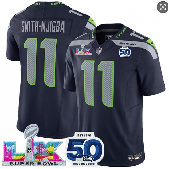 Men's Seattle Seahawks #11 Jaxon Smith-Njigba Navy 2025 F.U.S.E. Super Bowl LX And 50th Season Vapor Limited Football Stitched Jersey