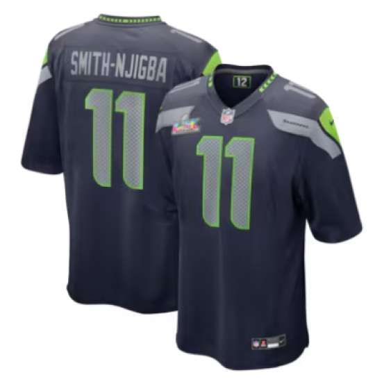 Men's Seattle Seahawks #11 Jaxon Smith-Njigba Blue 2025 2026 Super Bowl LX F U S E Stitched Jersey