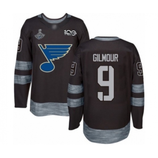 Men's St. Louis Blues #9 Doug Gilmour Authentic Black 1917-2017 100th Anniversary 2019 Stanley Cup Champions Hockey Jersey