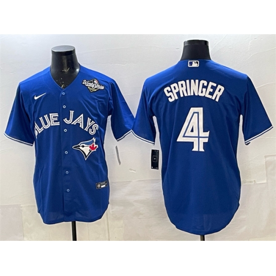 Men's Toronto Blue Jays #4 George Springer Blue 2025 World Series Cool Base Stitched Baseball Jersey