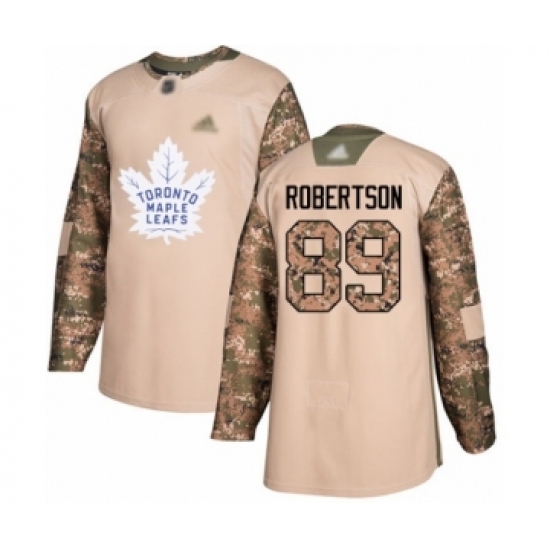 >Men's Toronto Maple Leafs #89 Nicholas Robertson Authentic Camo Veterans Day Practice Hockey Jersey