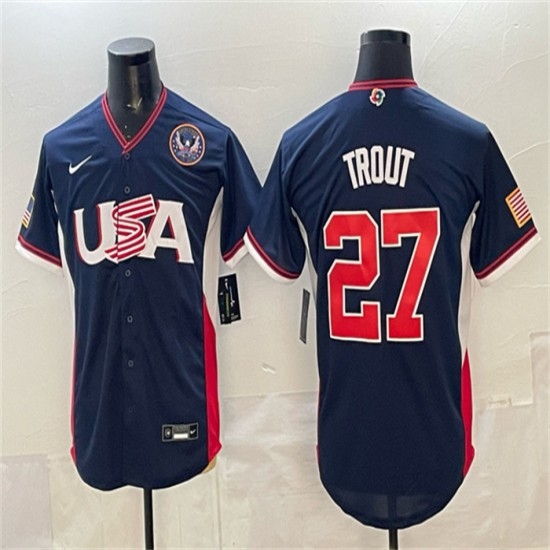 Men's USA Baseball #27 Mike Trout 2023 Navy World Baseball Classic Stitched Jersey
