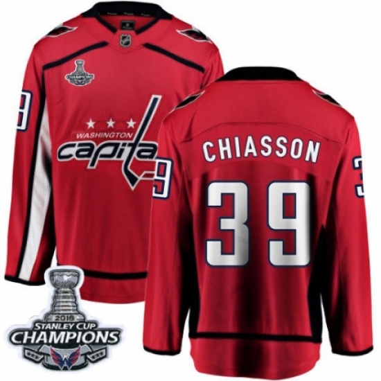 >Men's Washington Capitals #39 Alex Chiasson Fanatics Branded Red Home Breakaway 2018 Stanley Cup Final Champions NHL Jersey