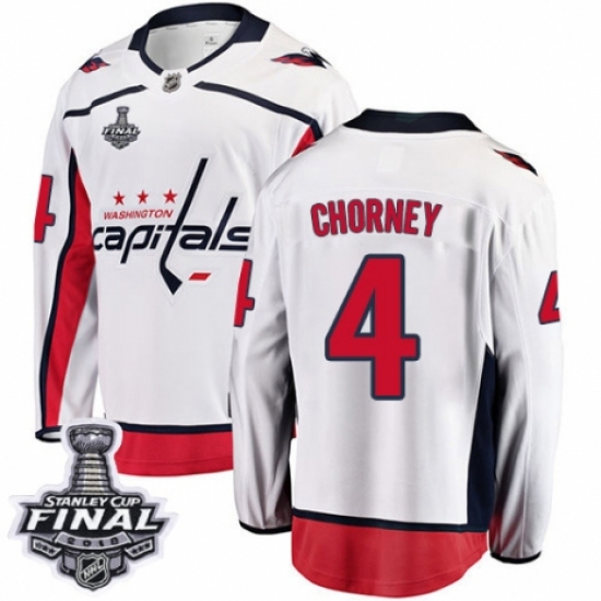 Men's Washington Capitals #4 Taylor Chorney Fanatics Branded White Away Breakaway 2018 Stanley Cup Final NHL Jersey