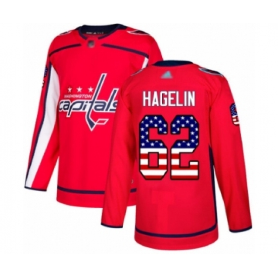 Men's Washington Capitals #62 Carl Hagelin Authentic Red USA Flag Fashion Hockey Jersey