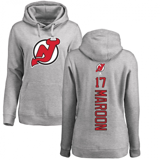 >NHL Women's Adidas New Jersey Devils #17 Patrick Maroon Ash Backer Pullover Hoodie