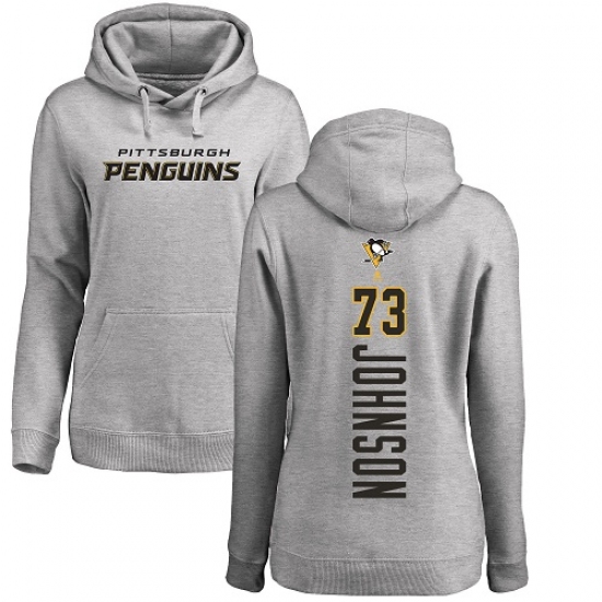 >NHL Women's Adidas Pittsburgh Penguins #73 Jack Johnson Ash Backer Pullover Hoodie