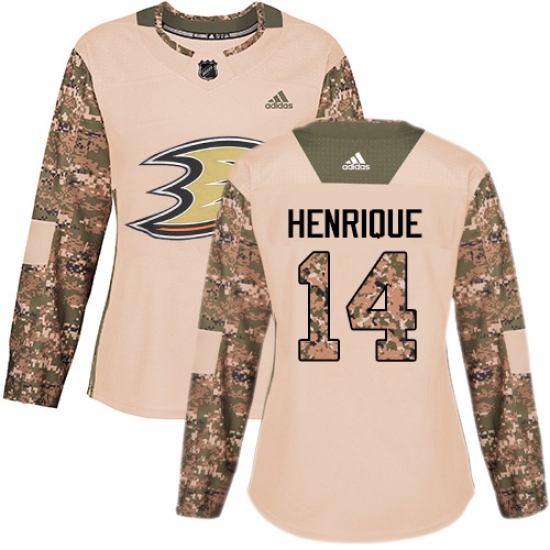 >Women's Adidas Anaheim Ducks #14 Adam Henrique Authentic Camo Veterans Day Practice NHL Jersey