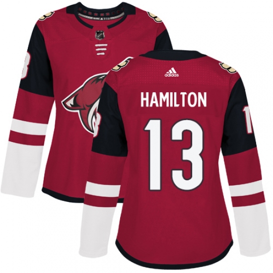 >Women's Adidas Arizona Coyotes #13 Freddie Hamilton Authentic Burgundy Red Home NHL Jersey
