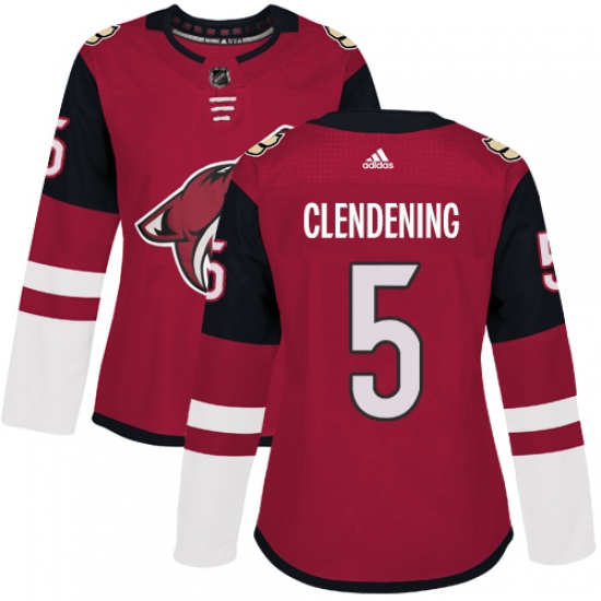 Women's Adidas Arizona Coyotes #5 Adam Clendening Premier Burgundy Red Home NHL Jersey