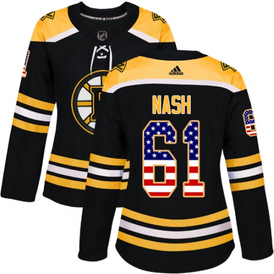 Women's Adidas Boston Bruins #61 Rick Nash Authentic Black USA Flag Fashion NHL Jersey
