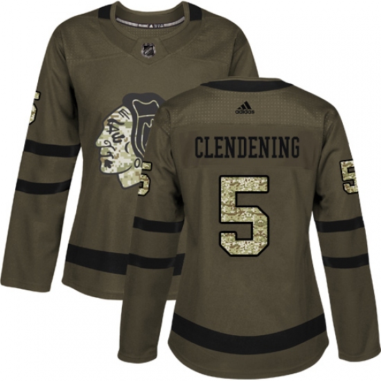 Women's Adidas Chicago Blackhawks #5 Adam Clendening Authentic Green Salute to Service NHL Jersey