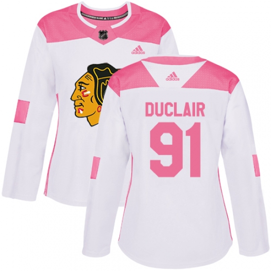Women's Adidas Chicago Blackhawks #91 Anthony Duclair Authentic White Pink Fashion NHL Jersey