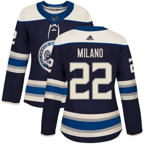 >Women's Adidas Columbus Blue Jackets #22 Sonny Milano Authentic Navy Blue Alternate NHL Jersey