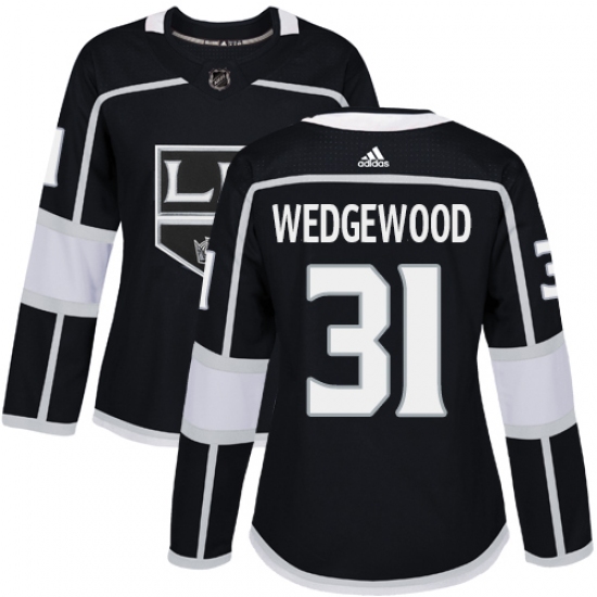 >Women's Adidas Los Angeles Kings #31 Scott Wedgewood Authentic Black Home NHL Jersey