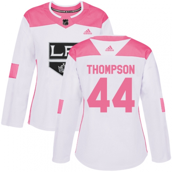 Women's Adidas Los Angeles Kings #44 Nate Thompson Authentic White Pink Fashion NHL Jersey
