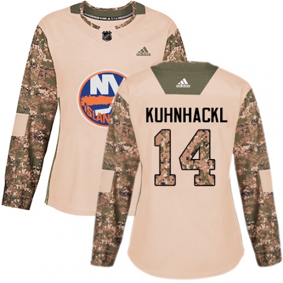 Women's Adidas New York Islanders #14 Tom Kuhnhackl Authentic Camo Veterans Day Practice NHL Jersey