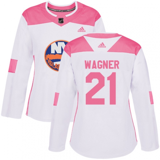 Women's Adidas New York Islanders #21 Chris Wagner Authentic White Pink Fashion NHL Jersey