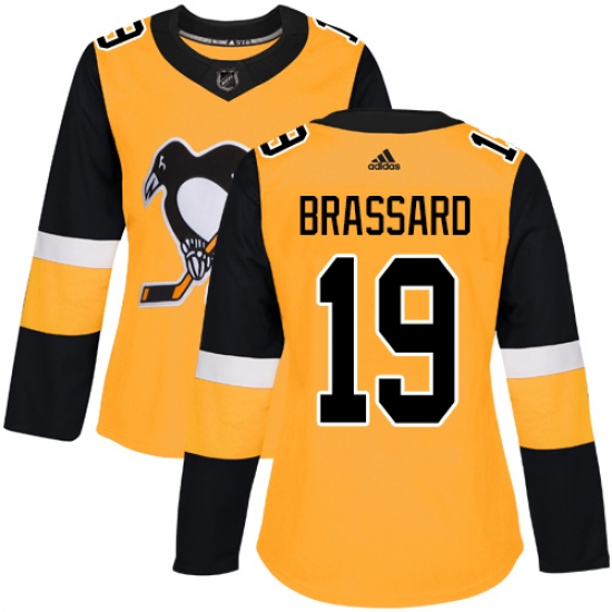 Women's Adidas Pittsburgh Penguins #19 Derick Brassard Authentic Gold Alternate NHL Jersey