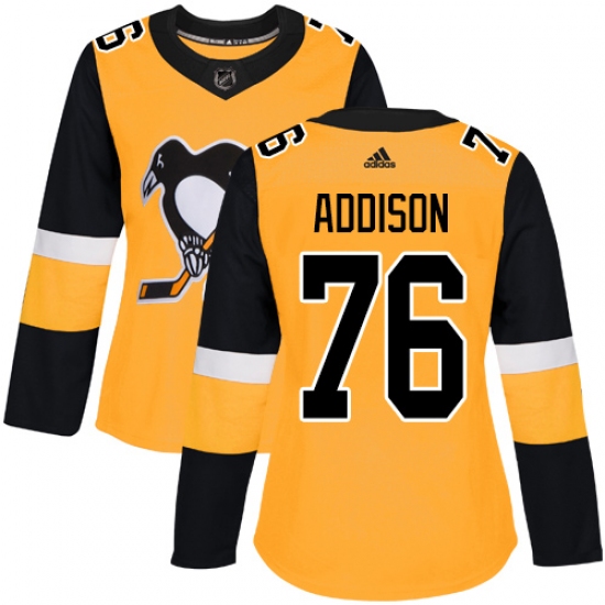 >Women's Adidas Pittsburgh Penguins #76 Calen Addison Authentic Gold Alternate NHL Jersey
