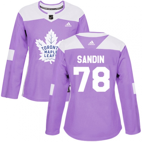 >Women's Adidas Toronto Maple Leafs #78 Rasmus Sandin Authentic Purple Fights Cancer Practice NHL Jersey