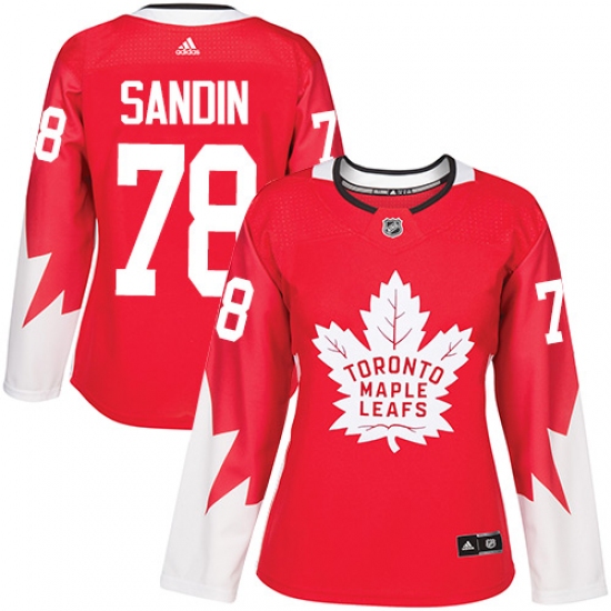 >Women's Adidas Toronto Maple Leafs #78 Rasmus Sandin Authentic Red Alternate NHL Jersey