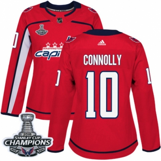 >Women's Adidas Washington Capitals #10 Brett Connolly Authentic Red Home 2018 Stanley Cup Final Champions NHL Jersey