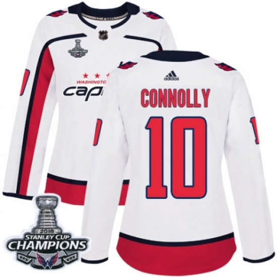 >Women's Adidas Washington Capitals #10 Brett Connolly Authentic White Away 2018 Stanley Cup Final Champions NHL Jersey