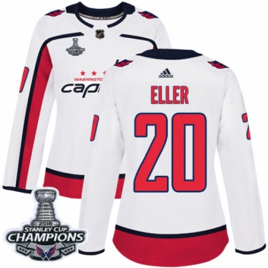 Women's Adidas Washington Capitals #20 Lars Eller Authentic White Away 2018 Stanley Cup Final Champions NHL Jersey