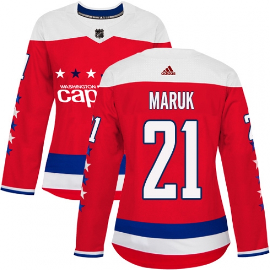 Women's Adidas Washington Capitals #21 Dennis Maruk Authentic Red Alternate NHL Jersey