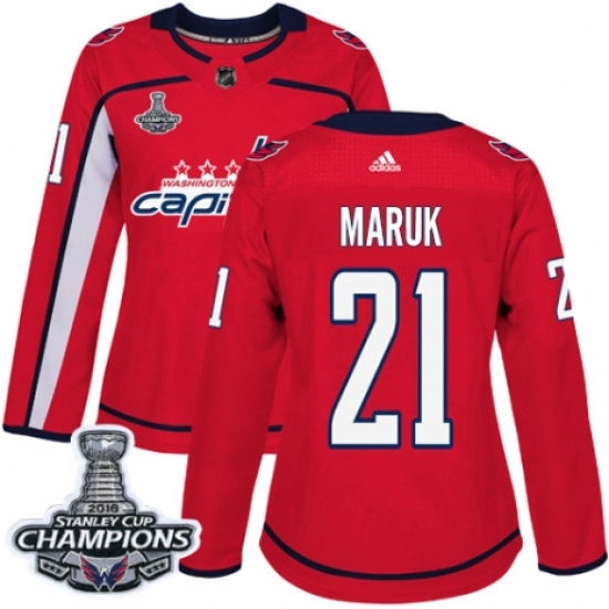 Women's Adidas Washington Capitals #21 Dennis Maruk Authentic Red Home 2018 Stanley Cup Final Champions NHL Jersey