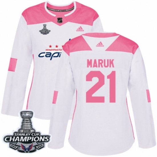 Women's Adidas Washington Capitals #21 Dennis Maruk Authentic White Pink Fashion 2018 Stanley Cup Final Champions NHL Jersey