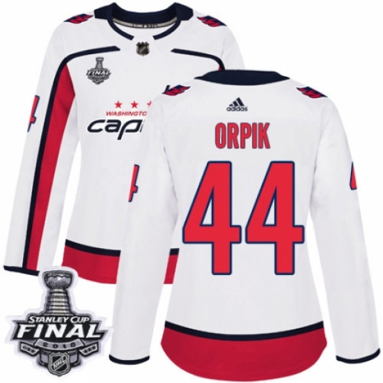 Women's Adidas Washington Capitals #44 Brooks Orpik Authentic White Away 2018 Stanley Cup Final NHL Jersey