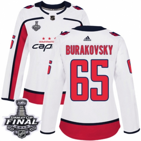 Women's Adidas Washington Capitals #65 Andre Burakovsky Authentic White Away 2018 Stanley Cup Final NHL Jersey