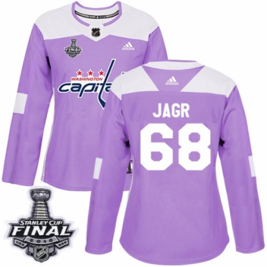>Women's Adidas Washington Capitals #68 Jaromir Jagr Authentic Purple Fights Cancer Practice 2018 Stanley Cup Final NHL Jersey