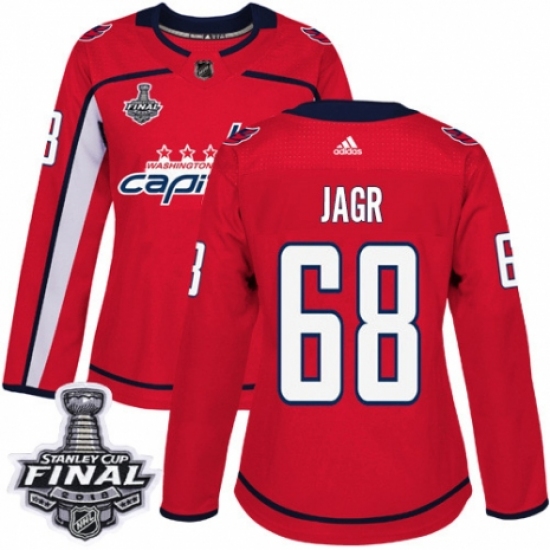 Women's Adidas Washington Capitals #68 Jaromir Jagr Authentic Red Home 2018 Stanley Cup Final NHL Jersey
