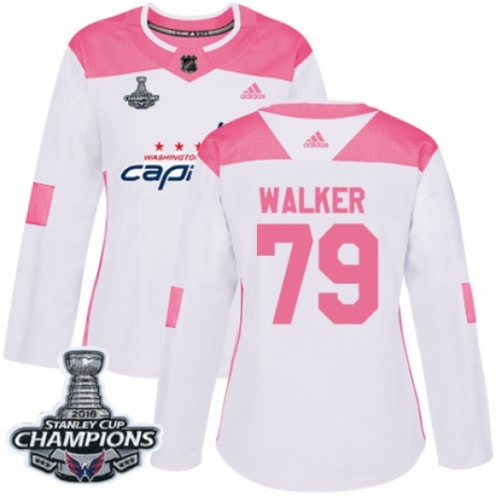 Women's Adidas Washington Capitals #79 Nathan Walker Authentic White Pink Fashion 2018 Stanley Cup Final Champions NHL Jersey