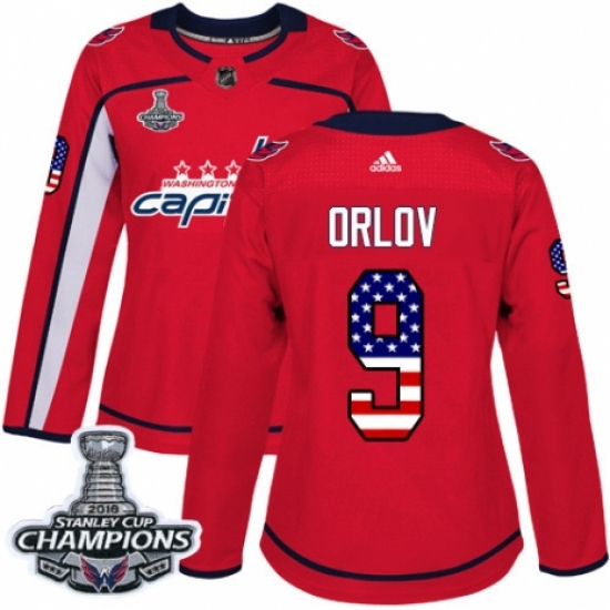 Women's Adidas Washington Capitals #9 Dmitry Orlov Authentic Red USA Flag Fashion 2018 Stanley Cup Final Champions NHL Jersey