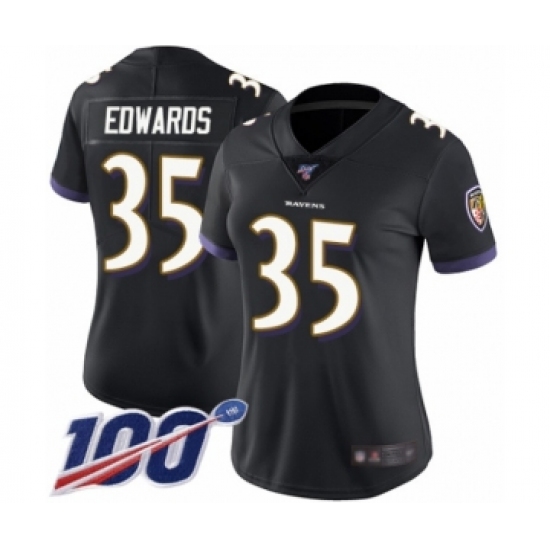 >Women's Baltimore Ravens #35 Gus Edwards Black Alternate Vapor Untouchable Limited Player 100th Season Football Jersey