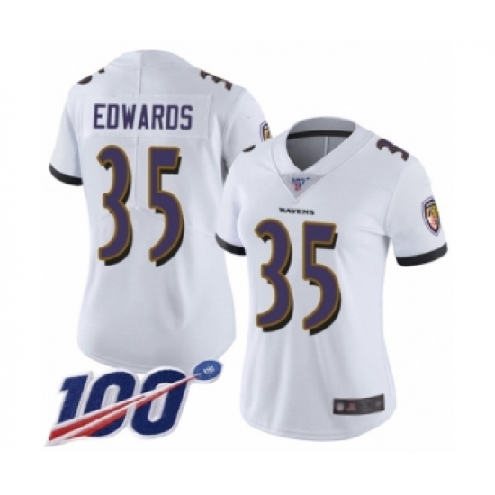 >Women's Baltimore Ravens #35 Gus Edwards White Vapor Untouchable Limited Player 100th Season Football Jersey