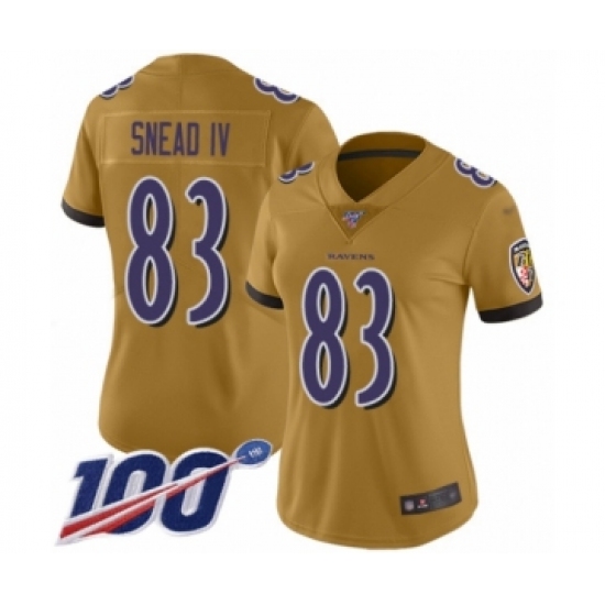 >Women's Baltimore Ravens #83 Willie Snead IV Limited Gold Inverted Legend 100th Season Football Jersey